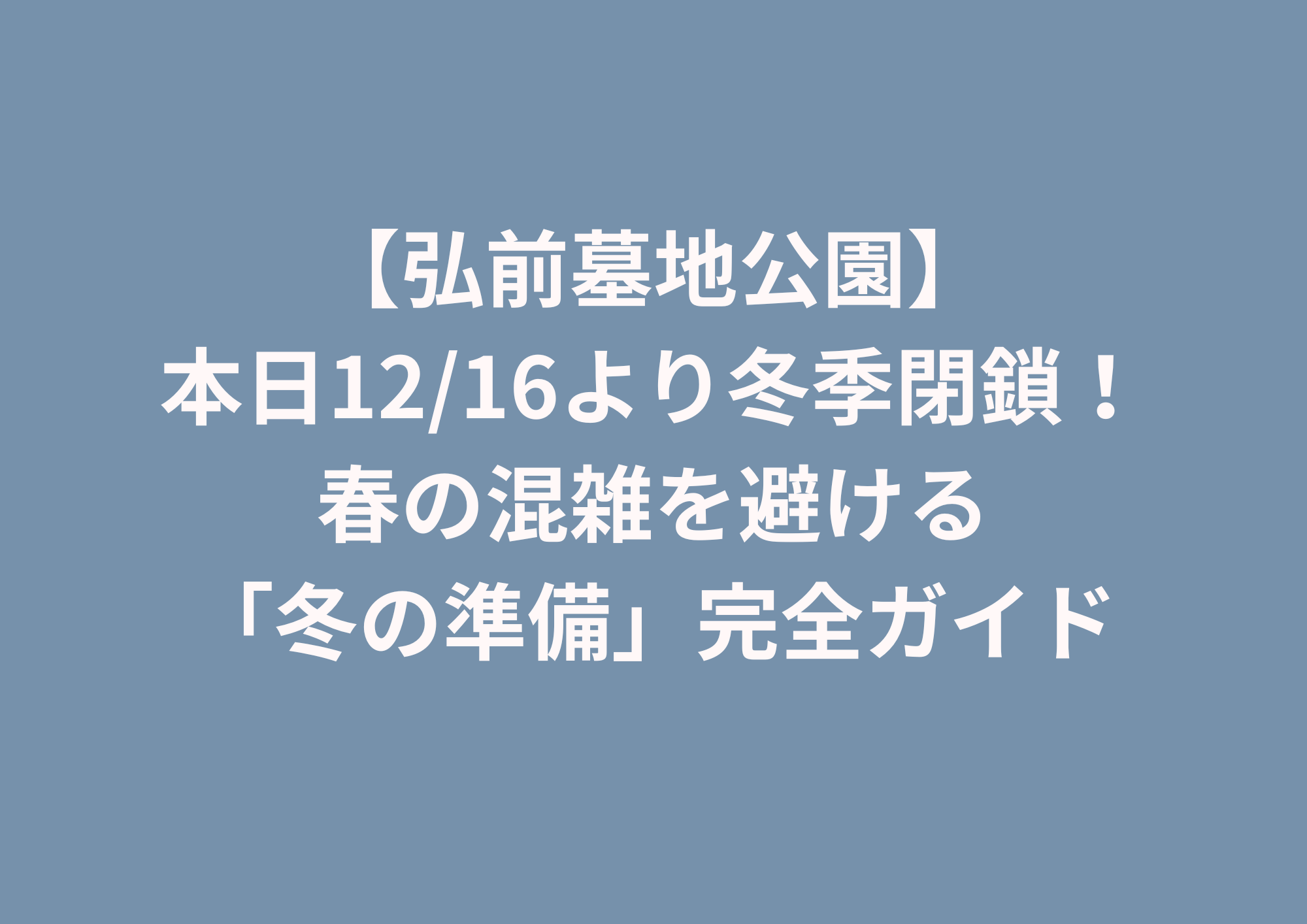 弘前市の公営霊園である弘前墓地公園(弘前霊園)は、本日12月16日より冬季閉鎖期間に入ります。例年、閉鎖期間は翌年3月15日までです。